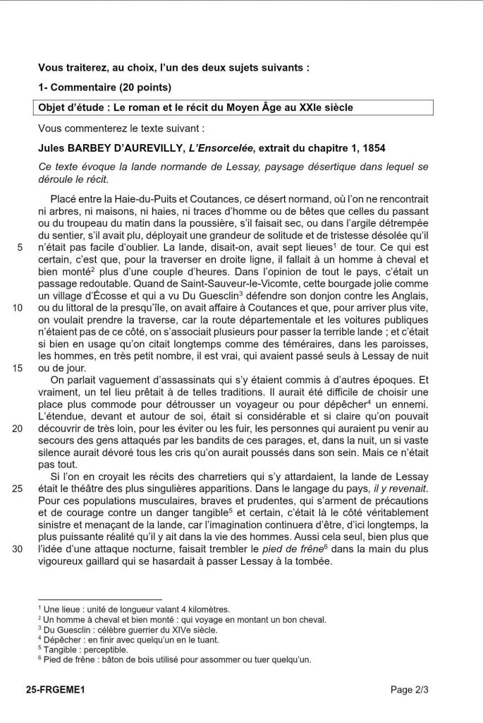Sujet commentaire  bac de français 2025 le vendredi 13 juin