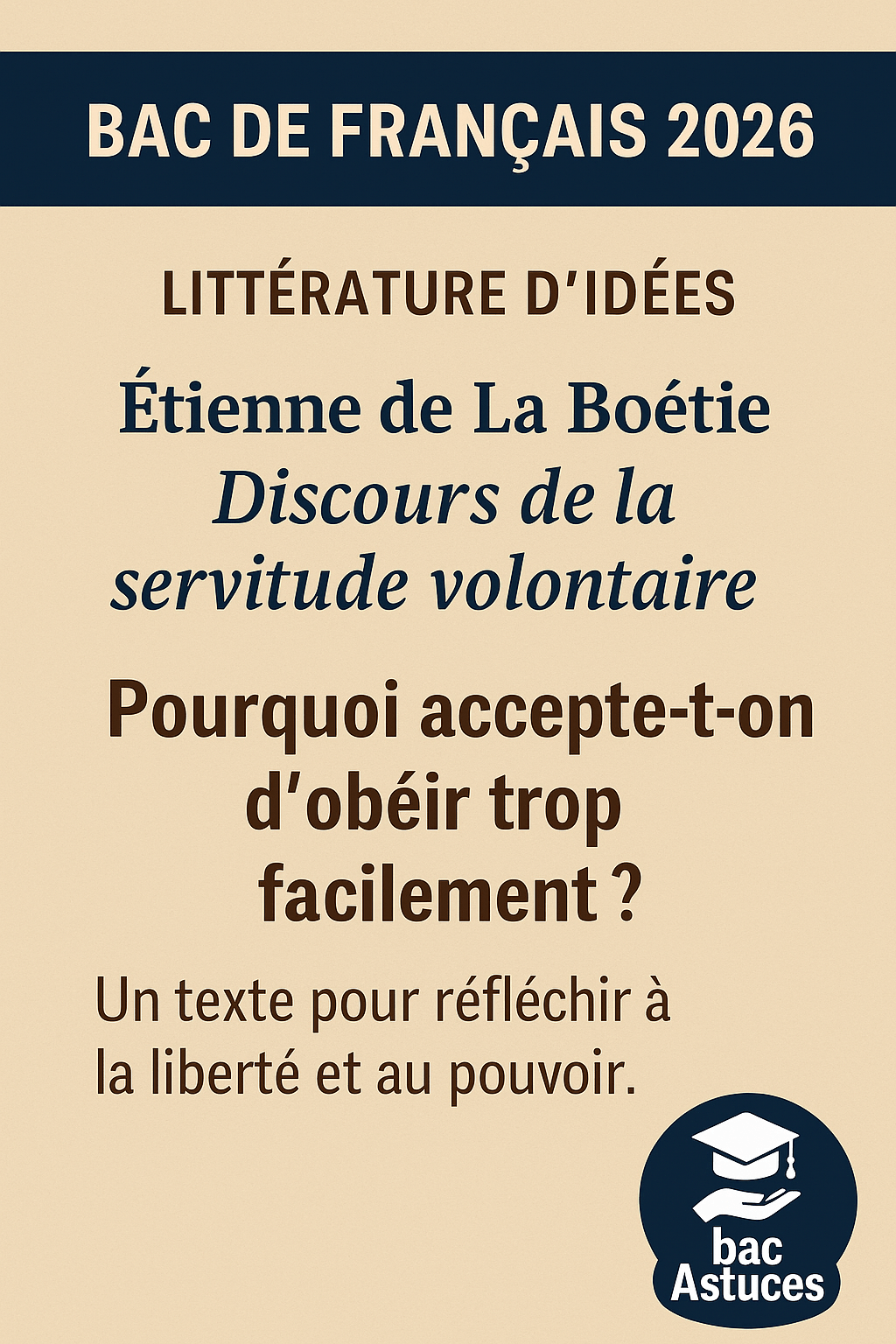 Un avis sur « Discours de la servitude volontaire d’Étienne de La Boetie. Bac 2026 »